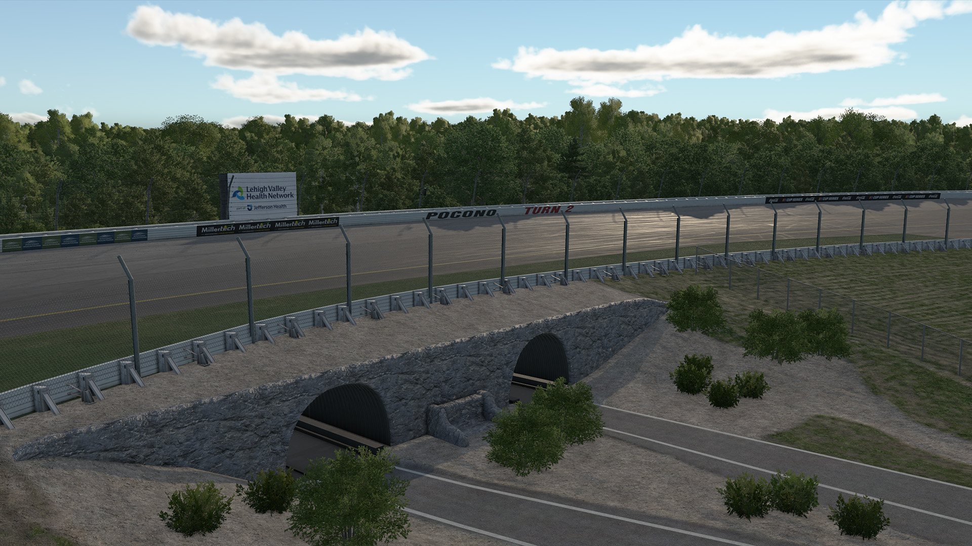 Pocono Raceway, located in Long Pond, Pennsylvania, is a 2.5-mile (4.02 km) triangular oval unlike any other in motorsport. Opened in 1971, it has become a fixture on the NASCAR Cup Series calendar and has also hosted IndyCar and IMSA races.